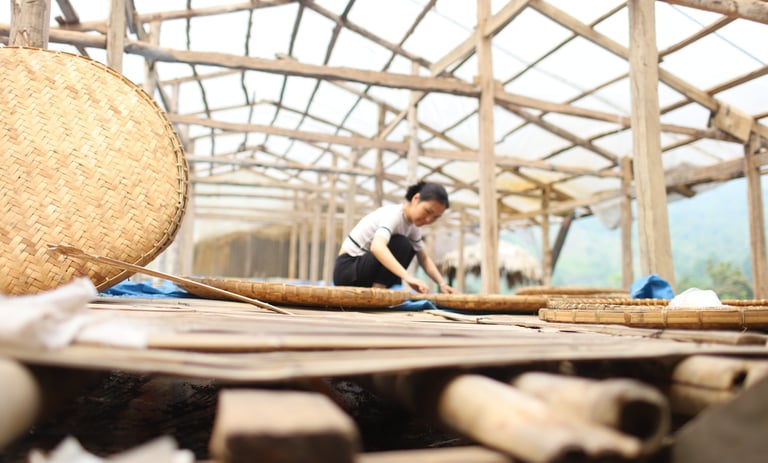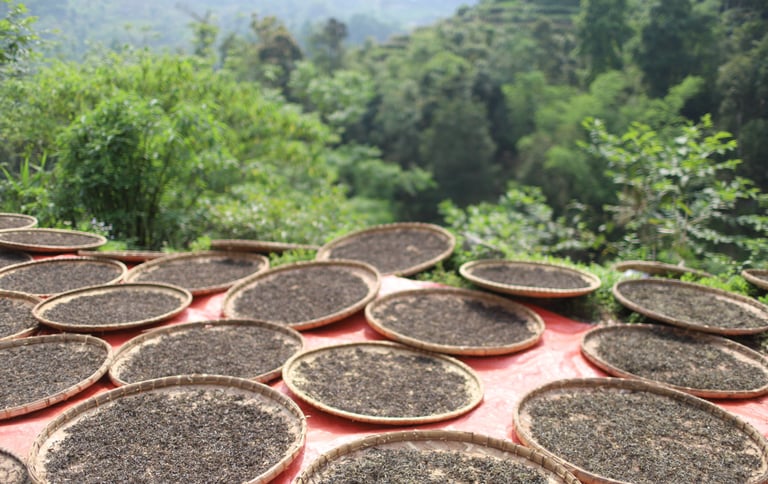 Mỗi mẻ được hái tay, sơ chế tại chỗ, phơi bằng nắng núi và gió rừng.